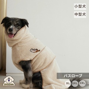 複数のタオルを使う必要はありません。1枚のバスローブでしっかり吸水しながら、ワンちゃんが自由にくつろげるようサポートします。