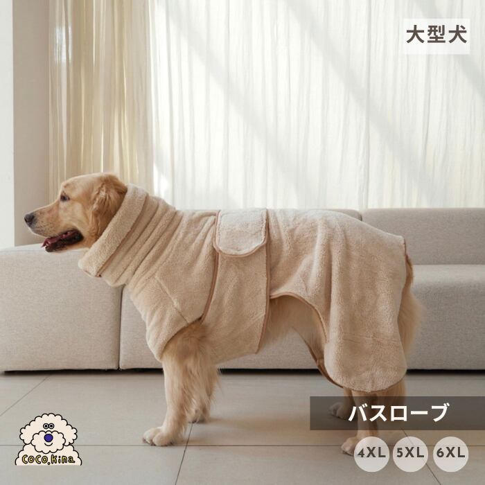 複数のタオルを使う必要はありません。1枚のバスローブでしっかり吸水しながら、ワンちゃんが自由にくつろげるようサポートします。