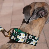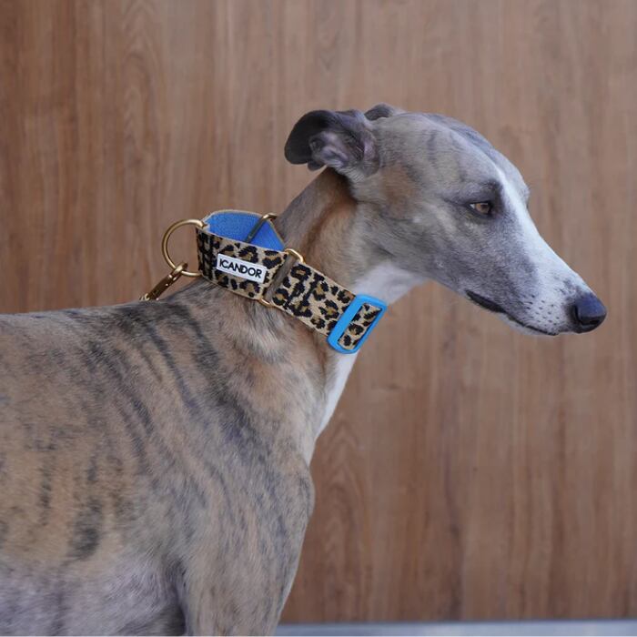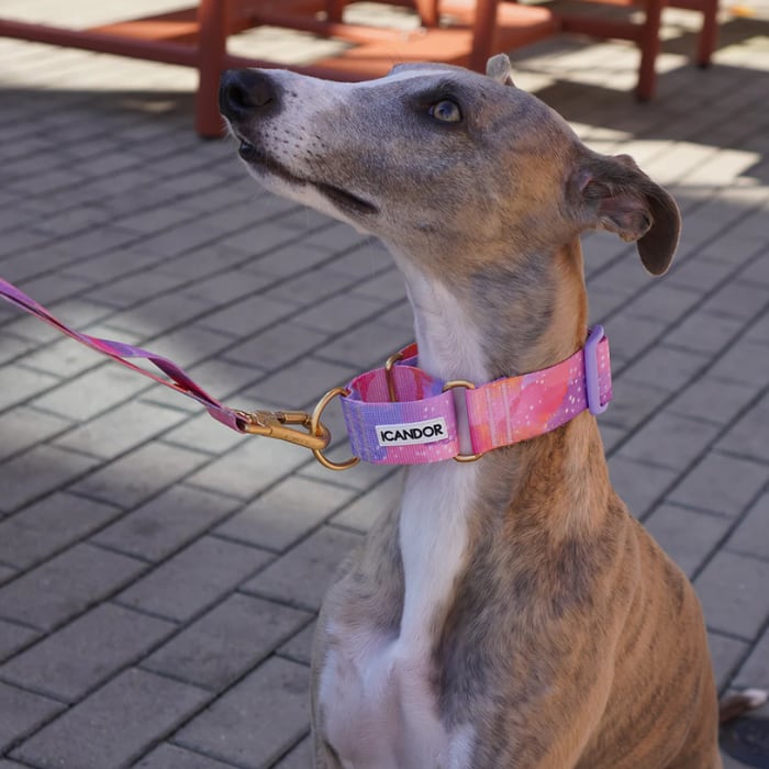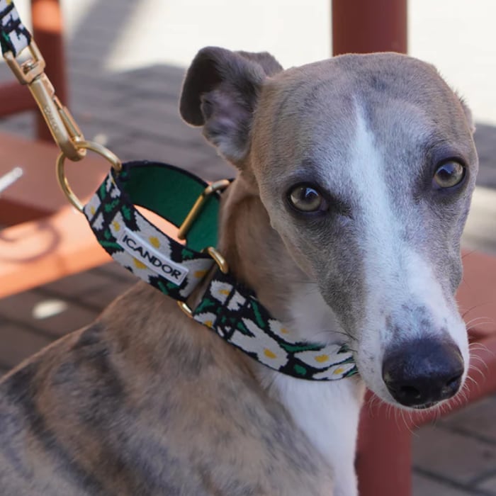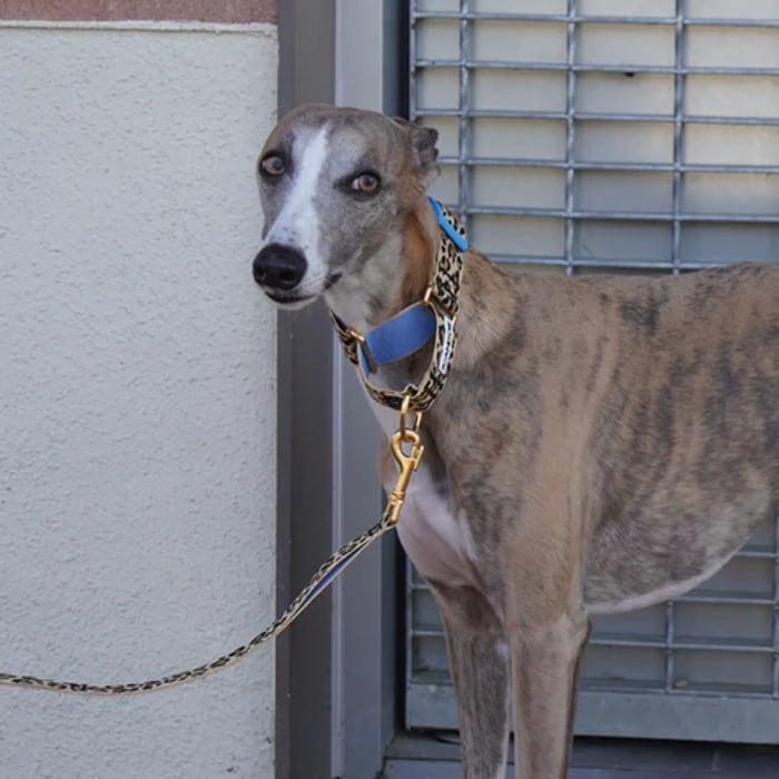 ① マーチンゲール型首輪(引っ張ったときだけ適度に締まり、普段はゆったりしている首輪)