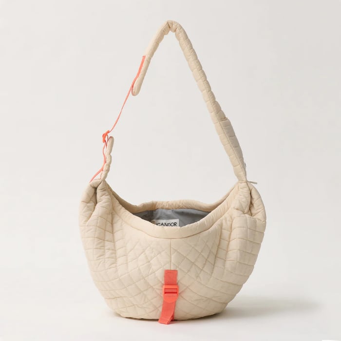 ダンプリング型の立体フォルムと柔らかなキルティング素材が、