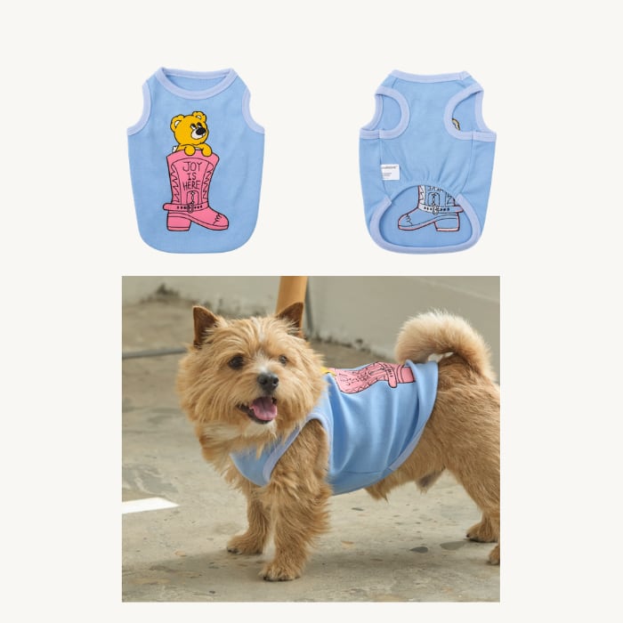 即納のみ【andblank】Joy Bear Western Sleeveless - Sky Blue XL.2XL
